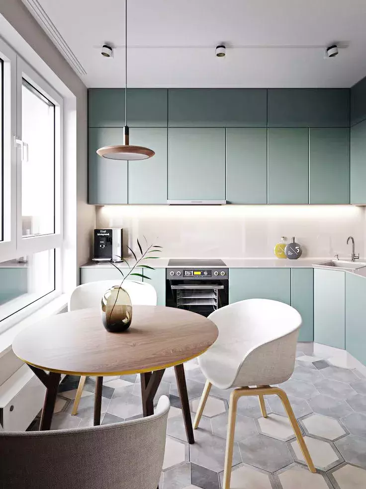 厨房也是一个对于收纳需求比较大的地方,小户型的厨房通常会选择做L型的橱柜布局,橱柜和吊柜结合起来,满足厨房的收纳需求。