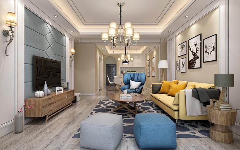 最后这种案例非常时尚清新,背景墙上采用了灰色的格调,搭配亮黄色的布艺沙发,使得室内显得非常时尚清新,在墙壁上还装饰了这种复古风的壁画,使得客厅显得更加文艺时尚,大大提升了客厅的档次感。