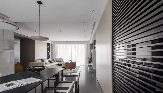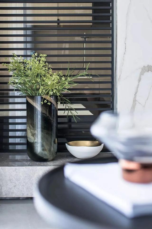 在这套160平米的现代简约风格装修案例中,整体空间以明亮大方的氛围基调,大量引入黑色百叶作为隔门设计,而在墙面装饰上也是引入大面积的木饰面,呈现出一种通透的高级气质,置身其中可以感受到一种轻松舒适的从容与惬意感。
