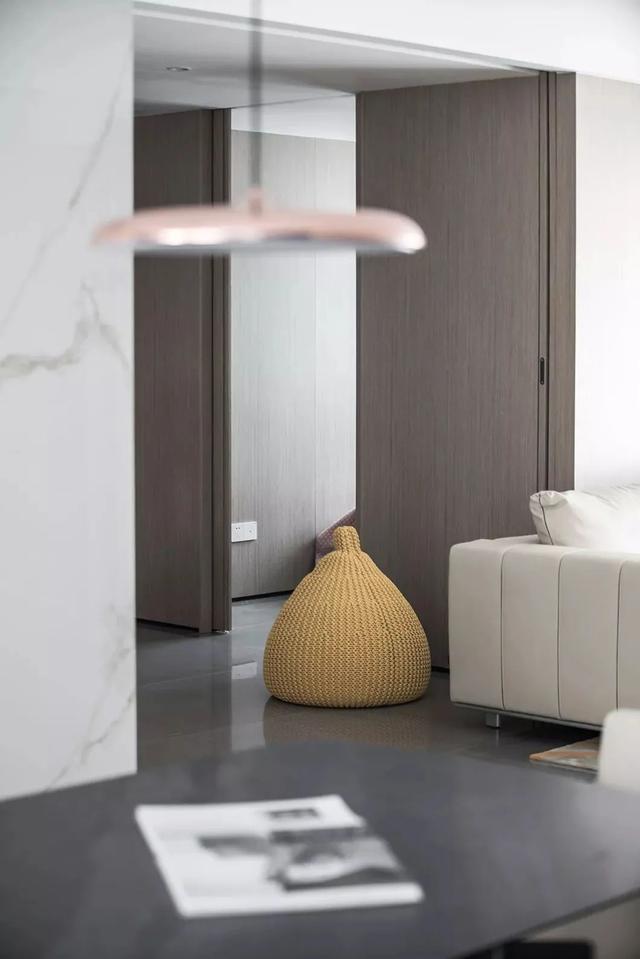 ▲沙发墙左侧的休闲区与沙发墙之间,还有一个木质感的推拉门,关上之后就可以提升卧室区域的私密性,在客厅娱乐活动的时候,也不会影响卧室休息的家人。