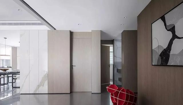 ▲餐厅与厨房之间,以百叶门共享作为酒柜与厨房的隔门,打开厨房门,百叶门就是餐厅的酒柜门;关上厨房门就露出餐厅酒柜架,灵活优雅的设计,显得更加华丽而有趣。
