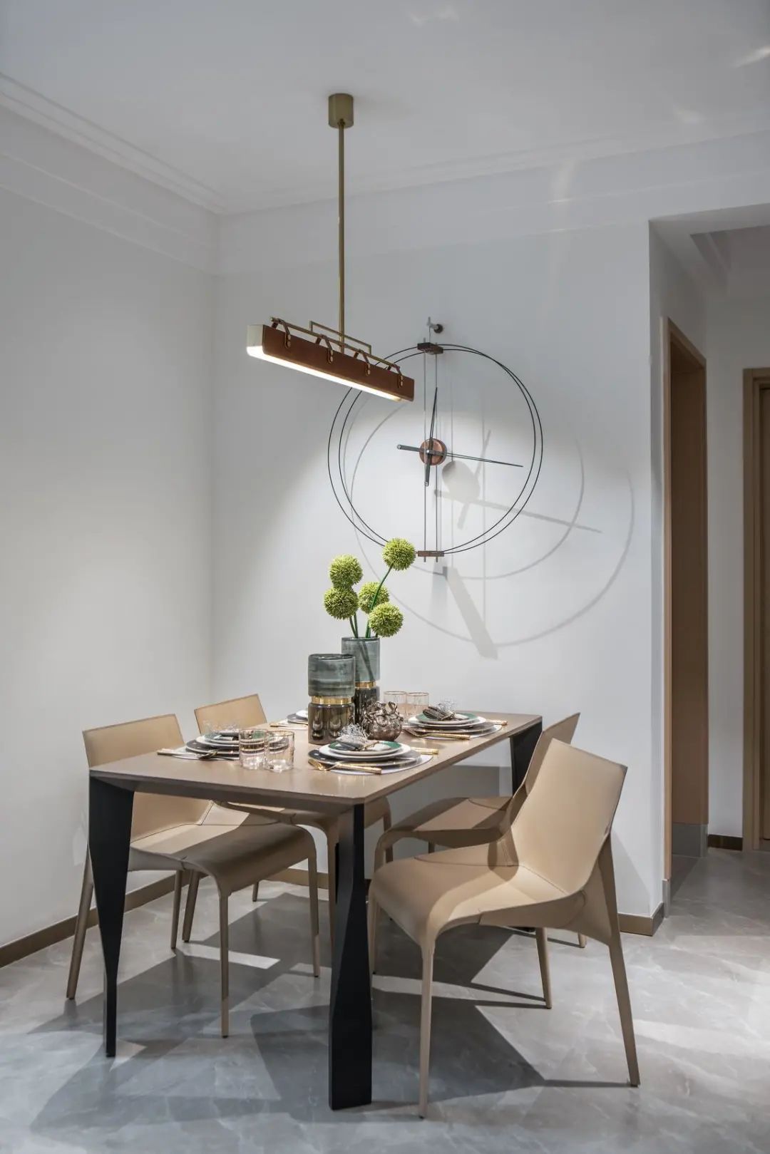 ▲餐厅墙面上挂一个极简的时钟,也为空间带来一种极简优雅的设计感。