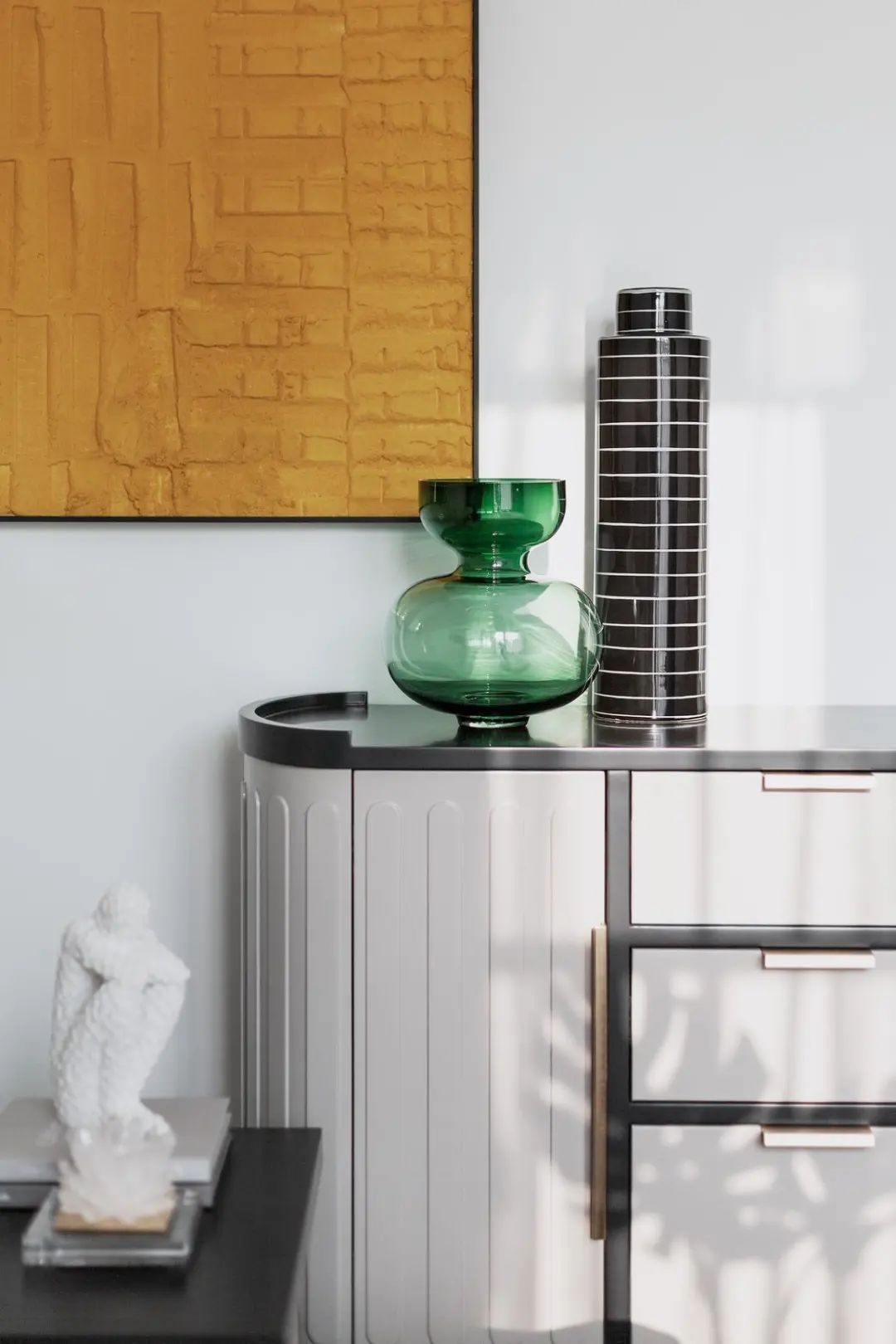 ▲侧边的复古优雅范的小斗柜,摆上花瓶装饰,也显得更加高级档次。