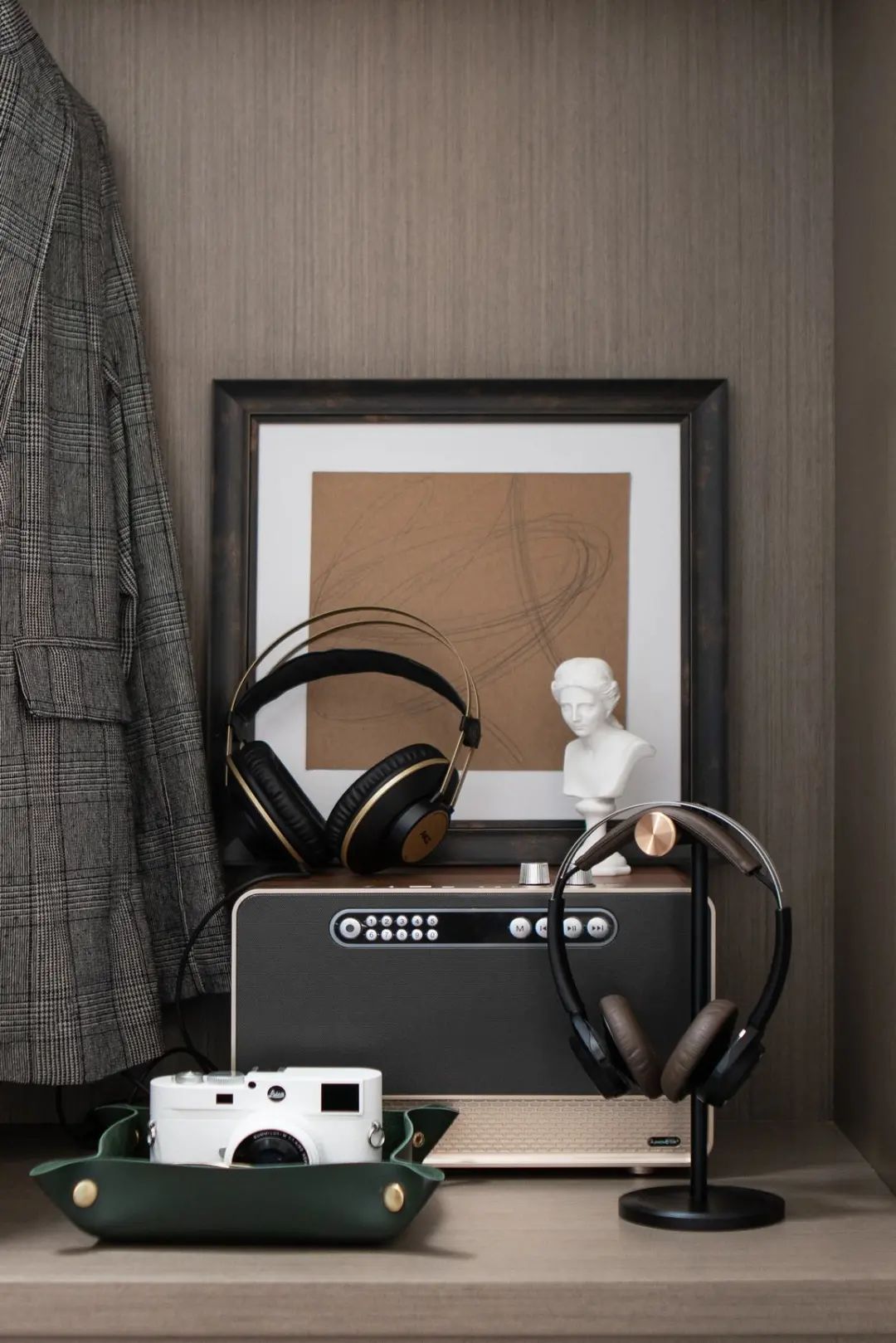 ▲卧室的衣柜里,加入开放挂衣区,放上复古调的音响与耳机,也是显得更加端庄华丽。