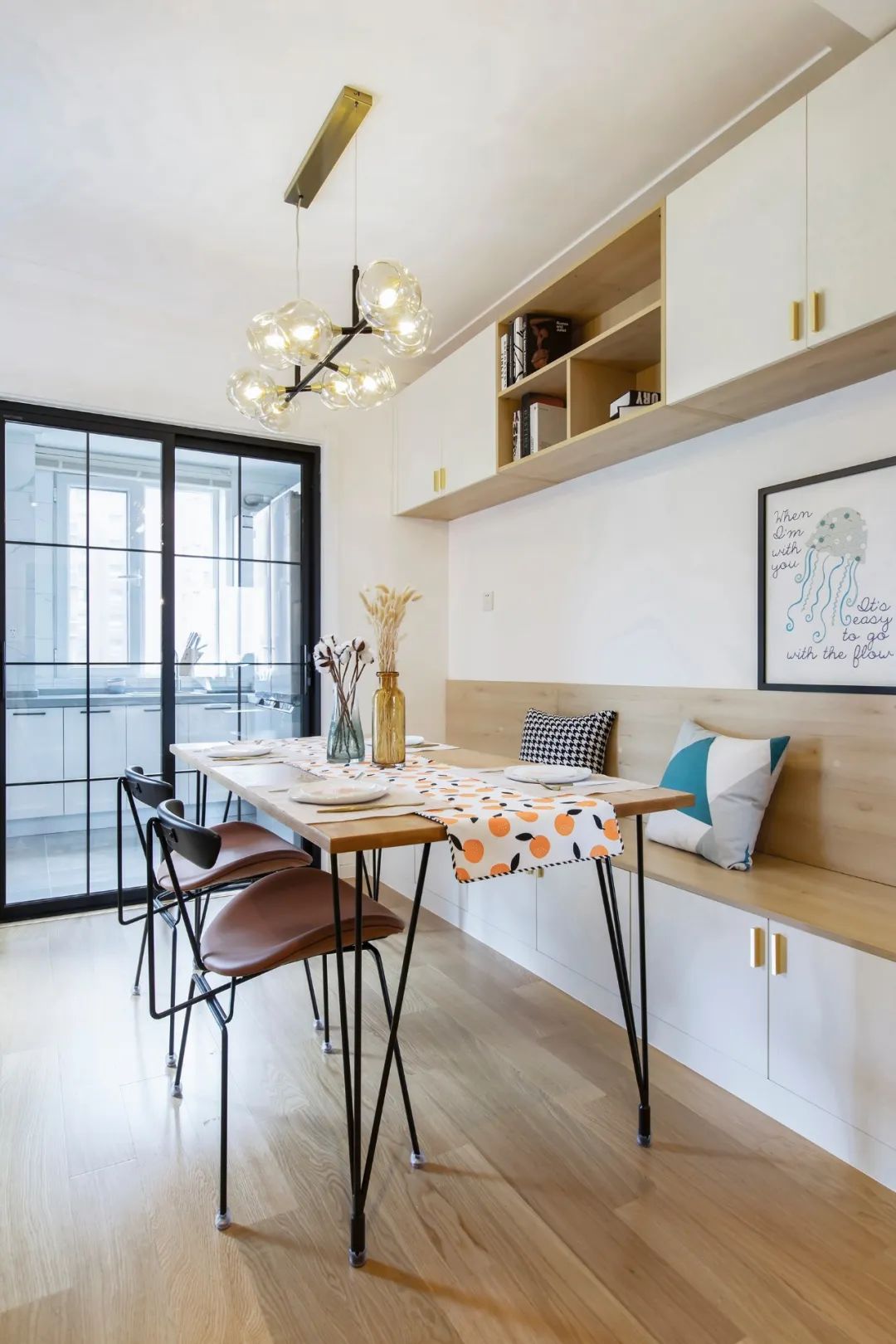 常规的餐椅是没有任何收纳可言的,而卡座不一样,底部的收纳空间可以缓解餐厅收纳不足的压力。