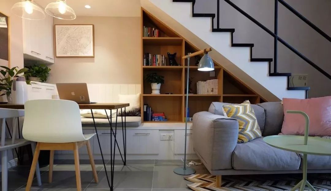 对于复式、跃层、叠墅、别墅等户型来说,不可避免楼梯的存在,而楼梯下方也是一个天然的收纳存储空间。