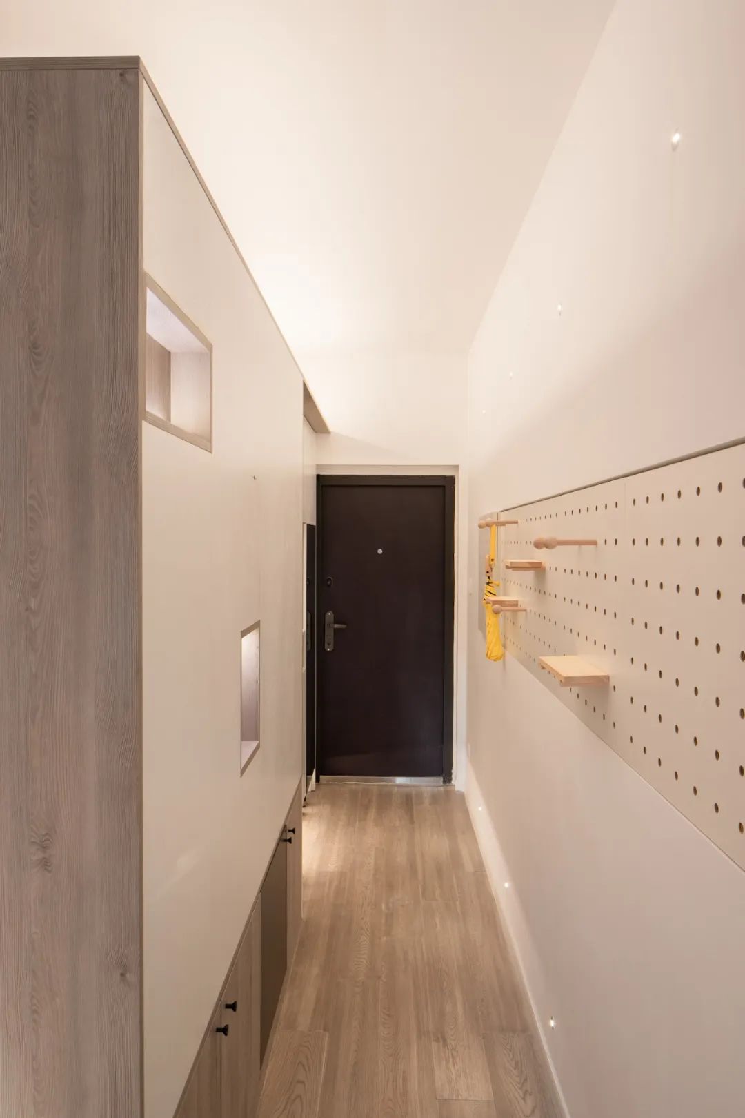 没有玄关是当下很多小户型的尴尬,进门鞋子没法放,钥匙包包没地挂,居家舒适度从入户开始就大打折扣,怎么办?无中生有,打造一个玄关出来。