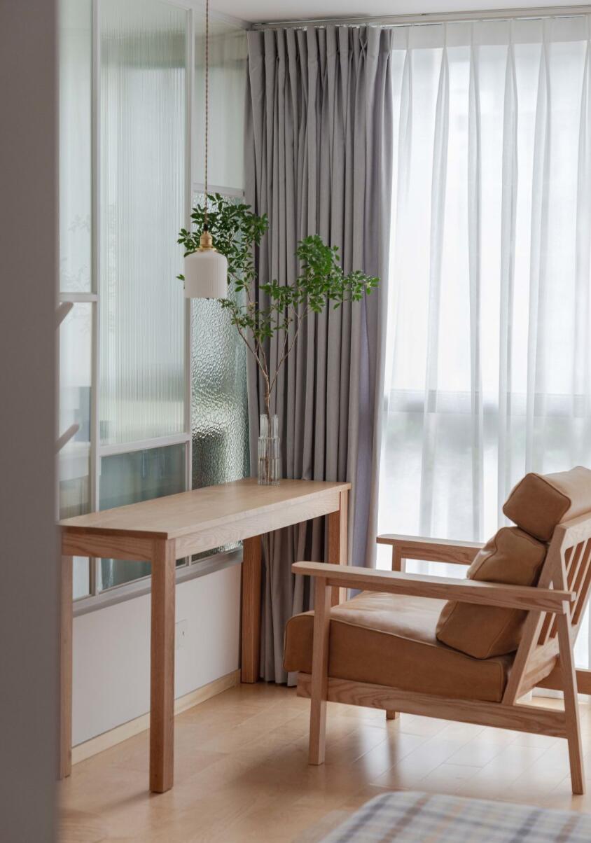 当阳台一分为二之后,卧室外面的阳台,则是以休闲区来定位的,以满足休息、阅读、梳妆、办公等功能。