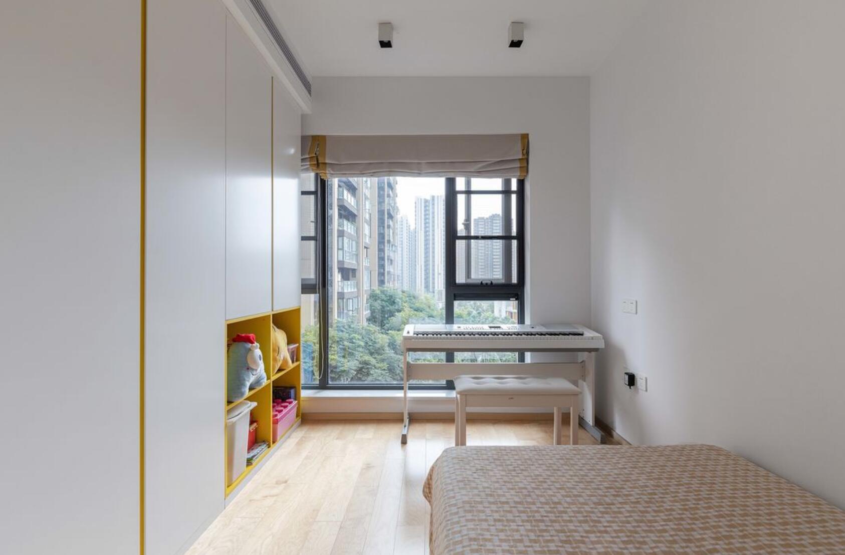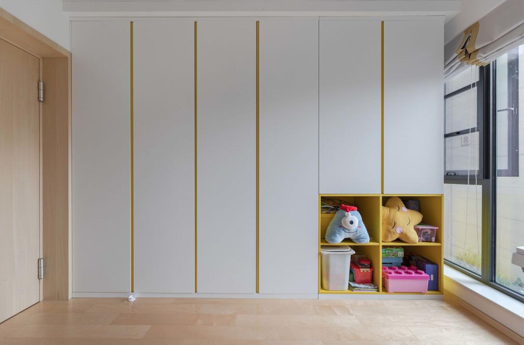 儿童房在延续白色调的基础上,利用一抹黄色元素来点缀,不仅带来了童趣,还活跃了空间气氛。而一组9㎡的大衣柜设计,则完全满足了孩子不同阶段的物品收纳需求。
