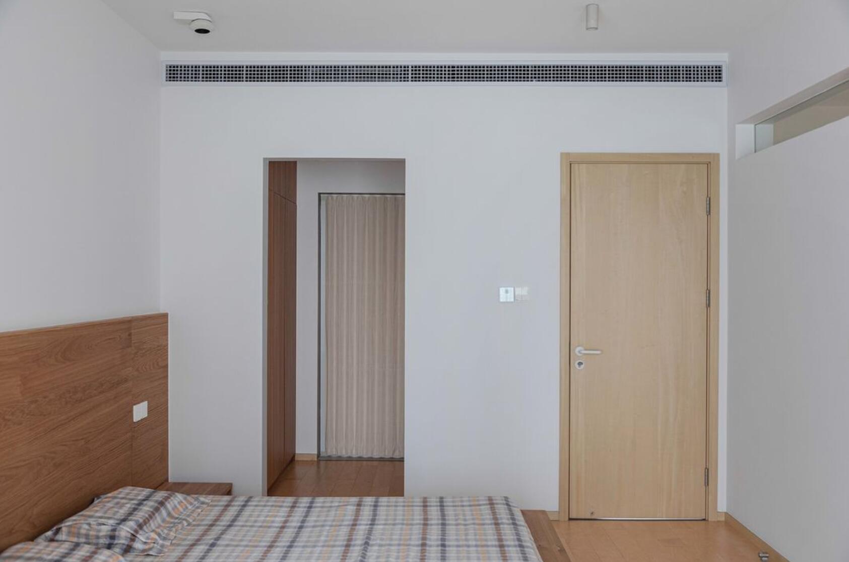 为避开入户门,将主卧门洞调整到侧面后,还让空间实现了一个迷你衣帽间。虽说收纳能力有限,但却保证了空间的工整性。