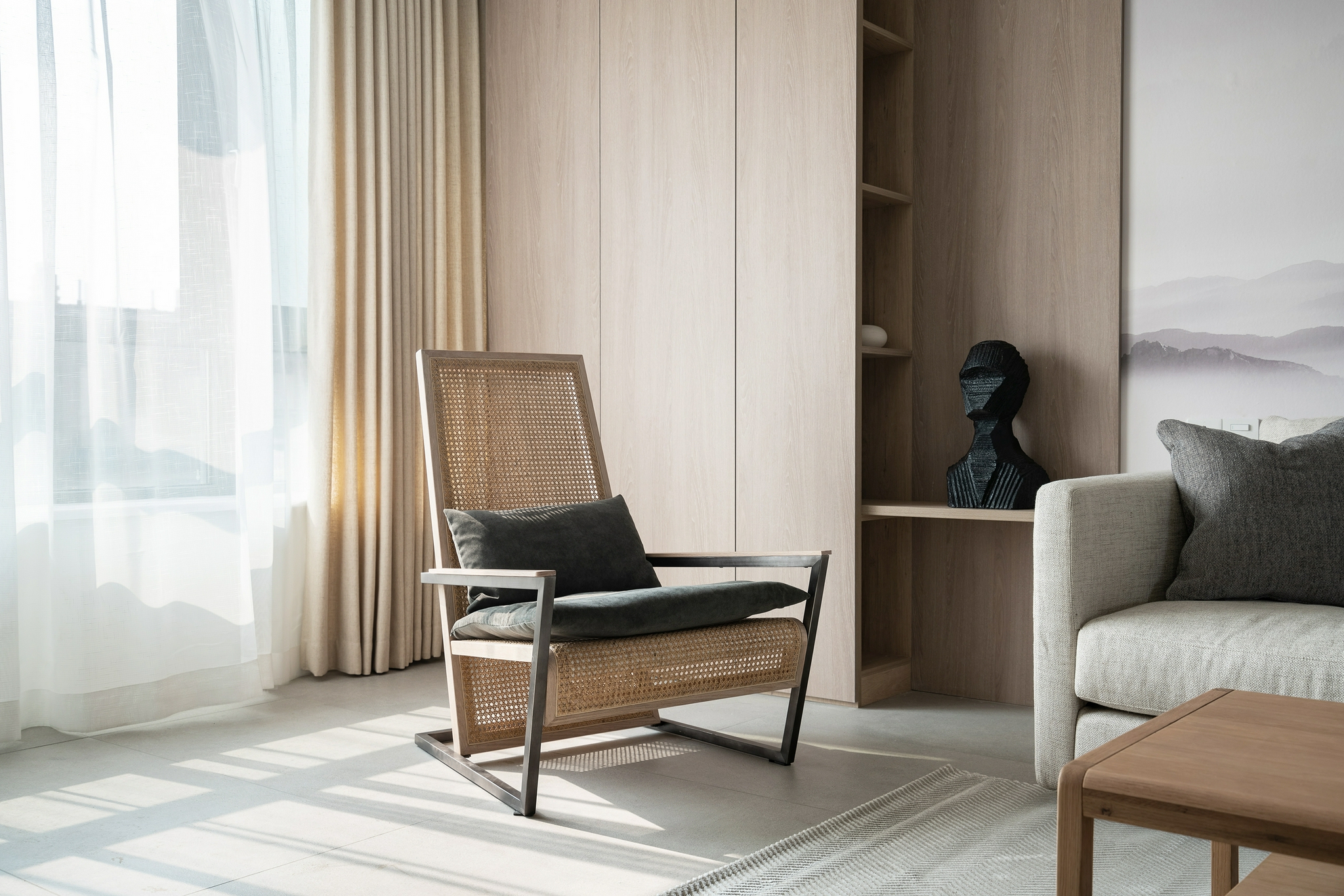 低调的材质创造出一份治愈的稳定感和归属感。当和煦的阳光洒落,斜躺在藤椅上,感受暖阳的清新自然,体验人与空间的交互与融合。