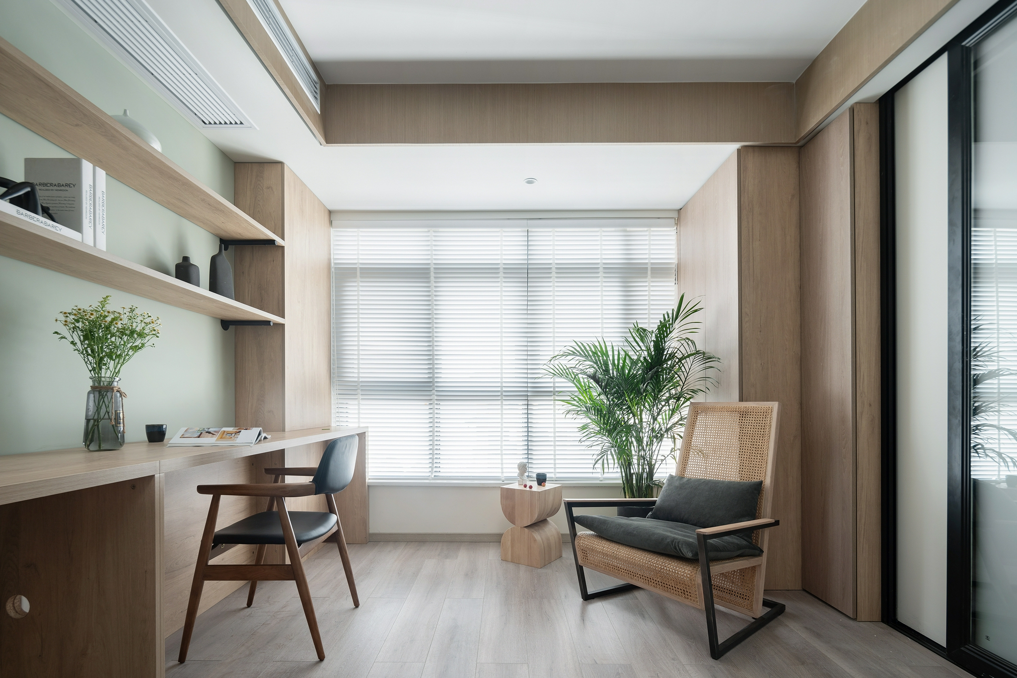创造一个触手可及,随处阅读的空间,是这个家最为重要的生活方式之一。一面墙的书架,原木温润,井然有序。微风透过窗户缝隙,轻轻撩起百叶窗,光影斑驳。