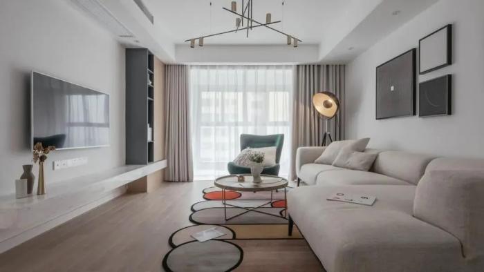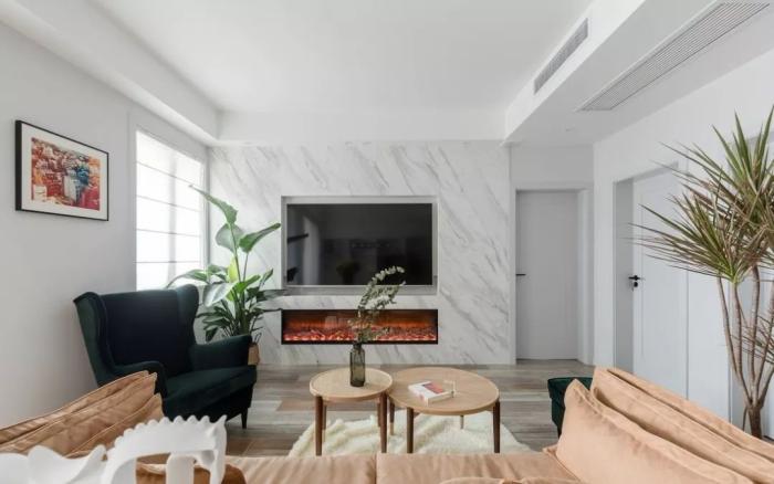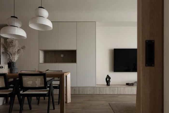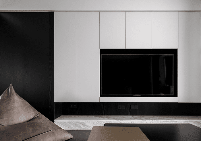 简单才是最耐看,一字型电视墙有两种做法,下面是一排的柜子或者做个地台,这取决于对收纳方面的需求。然而若是偏向卫生好清洁的,底部都需要适当的留空。