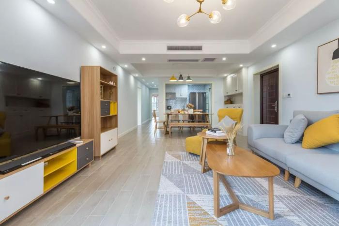 今天蓝海盛饰分享的是一套120平米的房子,整个房子以简洁的硬装空间,搭配上自然的木质家具,在活泼跳跃的色彩软装搭配下,营造出一个清新舒适的空间,令人感觉温馨而又浪漫惬意。下面就一起来看看吧,希望大家喜欢~