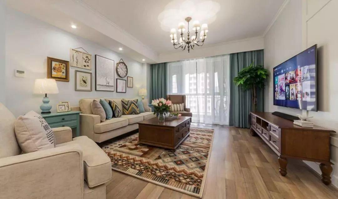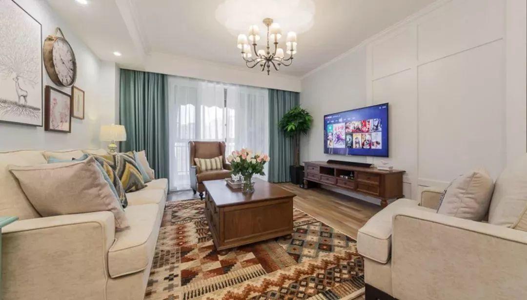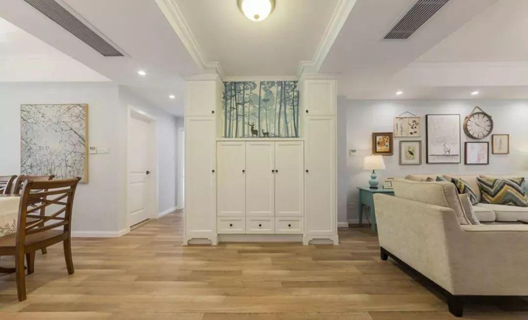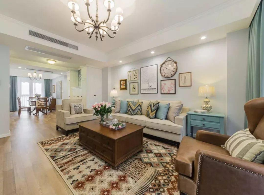 这是一套116平米的三房格局,整体以现代大方的硬装空间,搭配上现代美式的软装家具,营造出一个温馨雅致的空间,细节贴心的软装布置,也显得充满了华丽与情趣感。