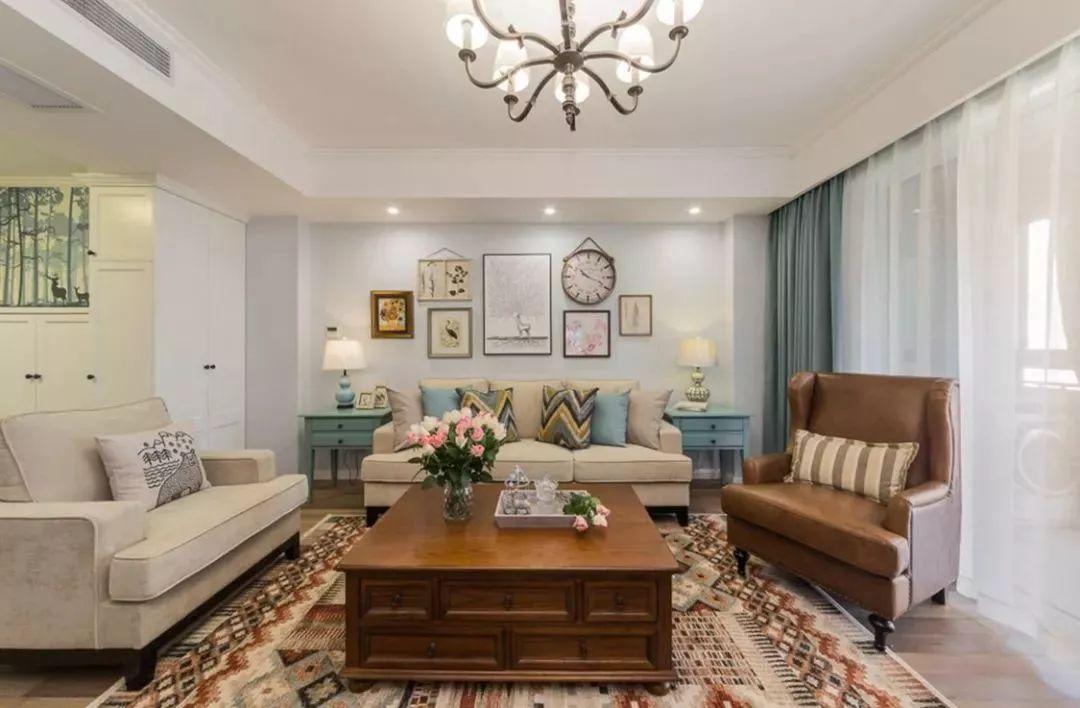▲整个客厅以现代大气的硬装空间,搭配上轻美式的软装家具,整体显得情趣而又雅致。