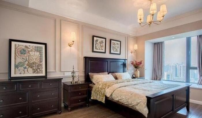 主卧室以经典的美式风来装饰,暖色墙体为主调,然后打上棕色大床和斗柜,营造出优雅自然的睡眠空间,更能舒缓一天的疲劳。