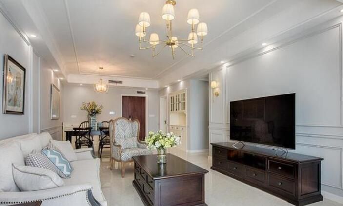 本套案例面积为127平的简美风格三居室,以现代简约的大众时尚理念和美式风格的复古元素搭配,避免了空间的杂乱感,减少了色彩的运用,主要运用大量的暖白色,然后搭配一些棕色的木质家具进行调和,增加了整个家的舒适感和惬意感。