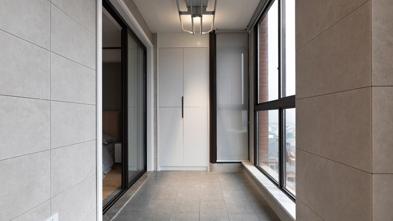 阳台做了一些改造,在阳台打造了一面大尺寸的落地窗,使得阳台显得非常敞亮大气,阳台与客厅之间利用玻璃推拉门隔开,这样既不影响室内的空间感,同时也能非常好的保持室内的卫生。在阳台还做了一个白色的柜子,柜子采用入墙式的安装方式,将空间非常好的使用了起来,使得室内显得更加敞亮。