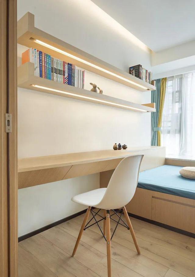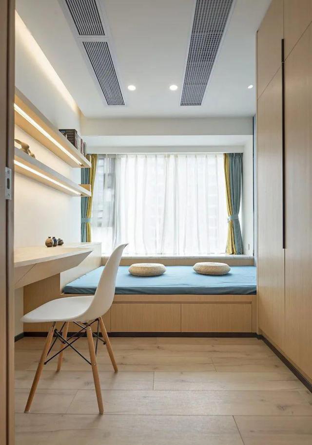 榻榻米+书房的设计,让空间实用性翻倍,既可作为平时读书工作的区域,又可充当临时客房,还提供了强大的储物功能。