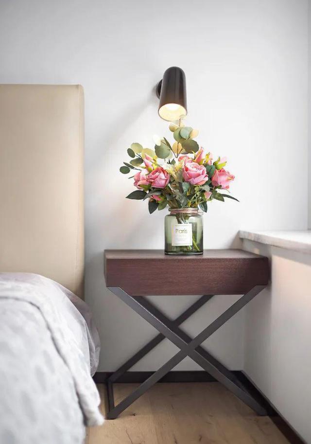 床头的壁灯设计增添氛围灯光,提升格调的同时也便于睡前开关。