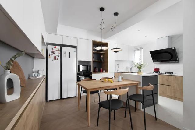 厨房采用开放式设计,打通厨房和餐厅之间的隔墙,巧妙地将中厨、西厨和用餐区融合在一起。