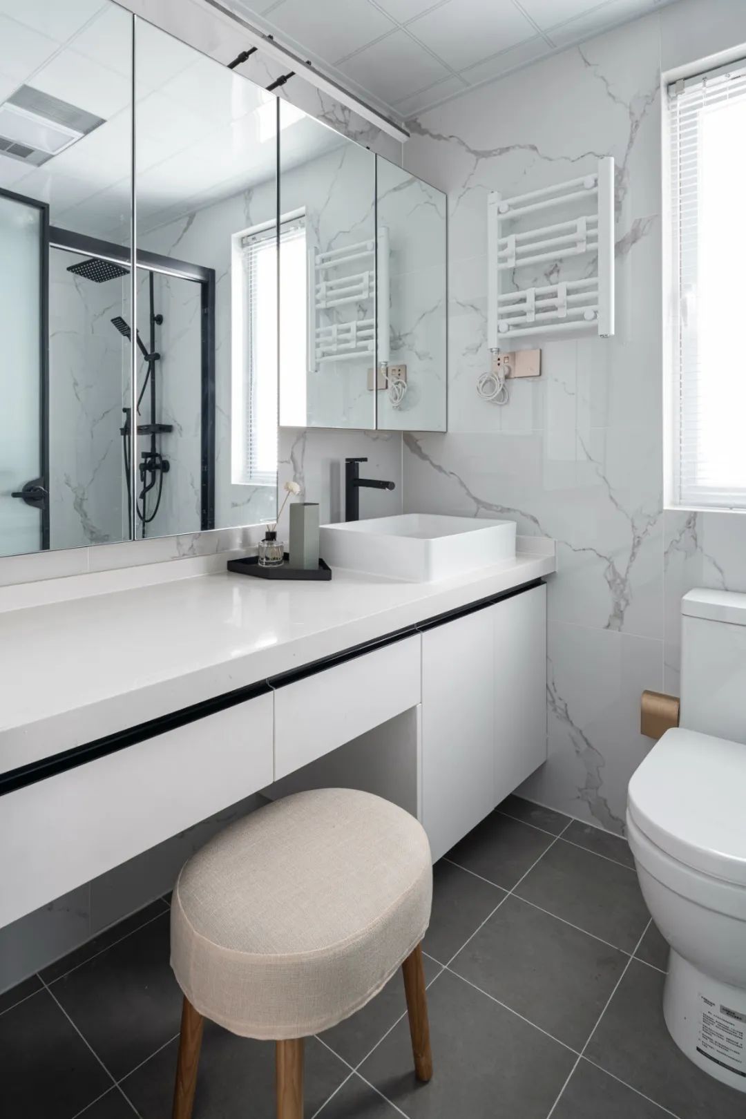 整面镜柜足够的储物空间,镜面的反射也扩大整体空间。