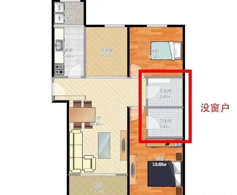 暗卫就是没有窗户的卫生间,一般采光不好、难通风、易潮湿,还会有异味,要是窜到其它房间,整个人就不好了。