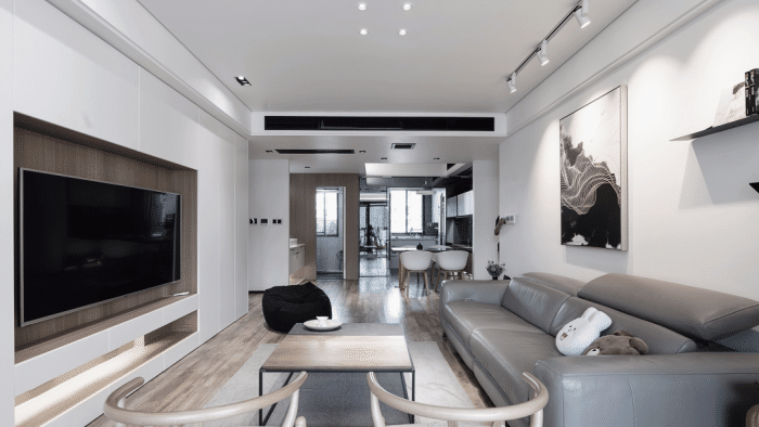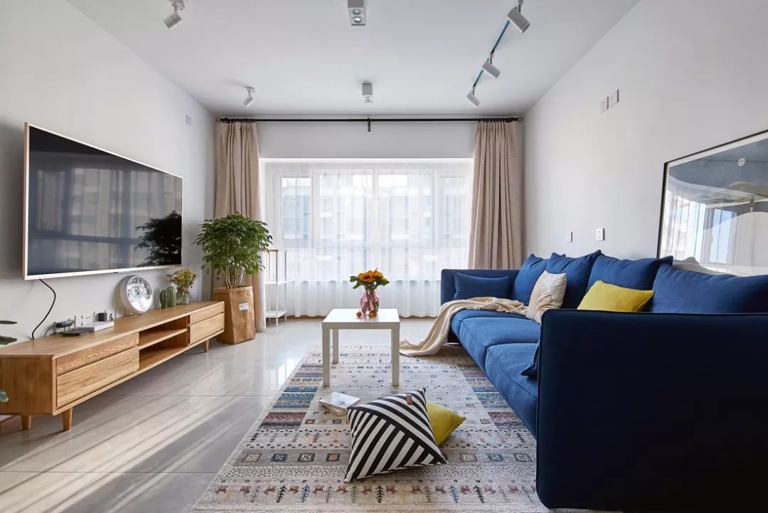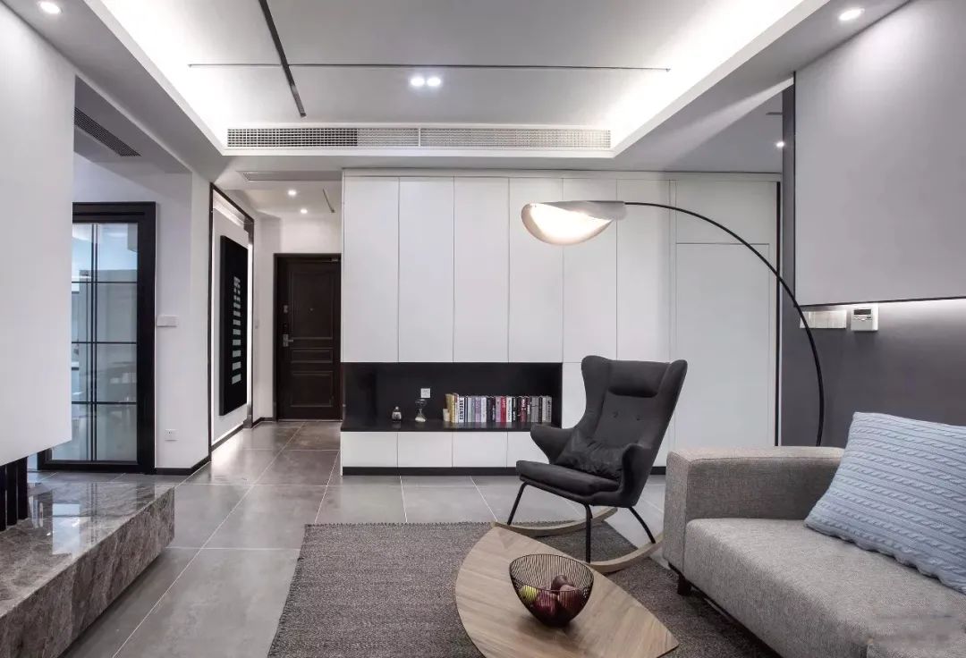 轨道灯搭配前面的筒灯和灯带,可以做成"见光不见灯"的无主灯设计,单独做轨道灯的话,可以不用做吊顶,还可以随意拆卸,不仅应用在客厅,还能在玄关、餐厅和厨房,照射到一些照不到的"死角",让家更明亮。
