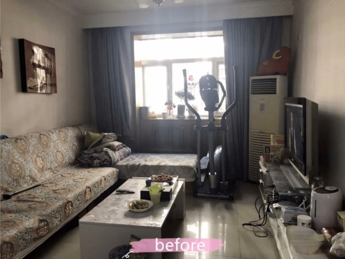 ▲改造前的客厅区域,没有足够的储物空间,非常凌乱。