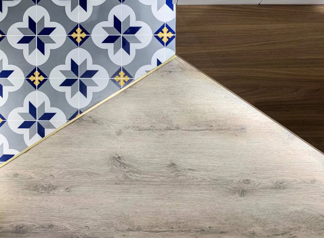 花砖、浅木纹地板、深木纹地板分别用于玄关、餐厅及楼梯,功能区的分割自然明显。