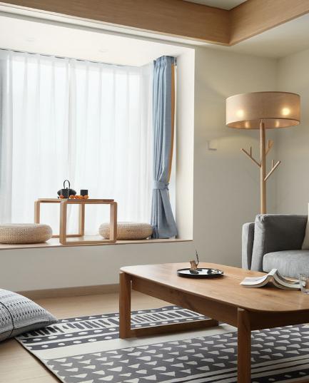 喜静不喜闹的朋友,也可以将飘窗改造成一个迷你茶室。简约日式风的蒲团,搭配迷你小茶台设计,伴着和煦的阳光,与三两好友品茶谈心,也是快节奏生活下的一种慢享受吧!