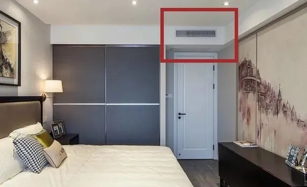 如果有些家庭选择安装的是中央空调,安装在吊顶系统里面,出风口和回风口的位置也是需要提前规划好,同样不能对着床吹。