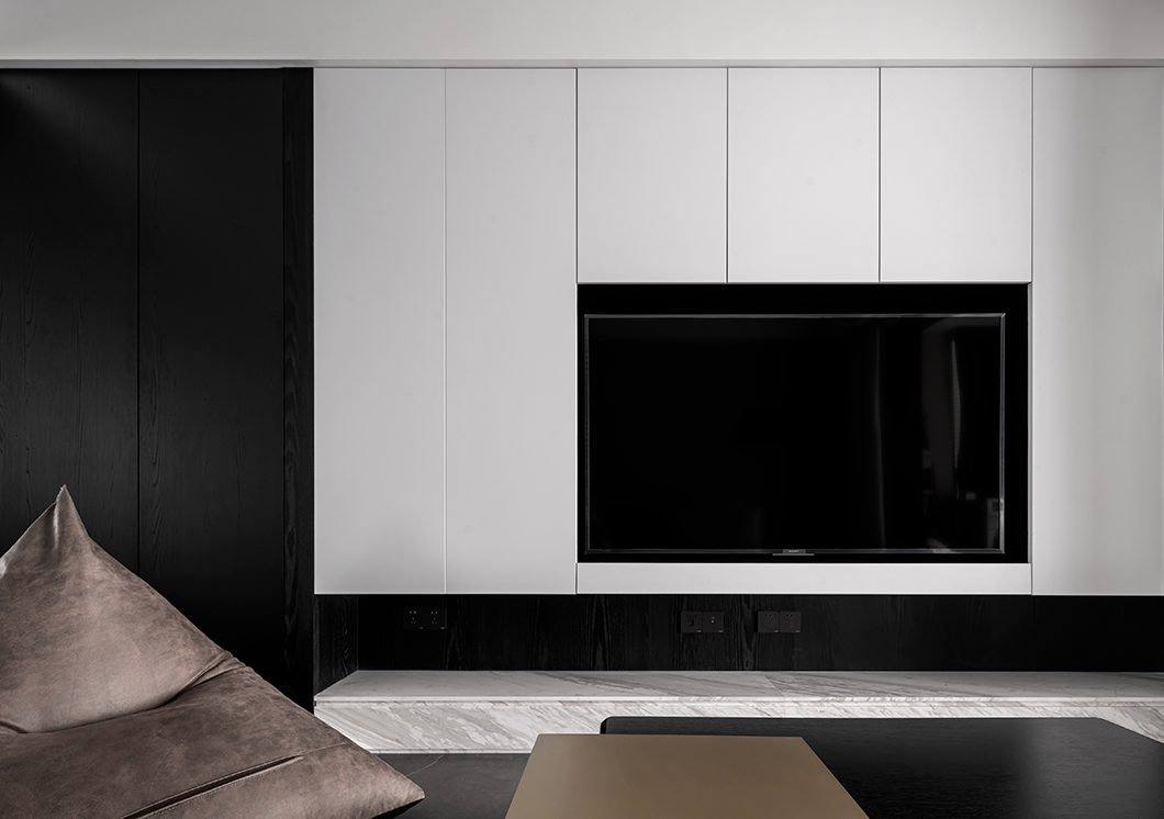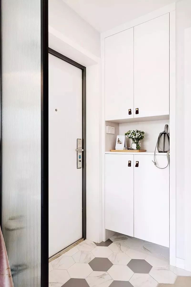 可以用柜门代替格子,整齐的柜门合上,室内空间一下子就整洁明亮了。柜门和格子可以参考“藏八露二”的原则,八成的比例做柜门,两成的比例做格子。既能保持整洁,又能在开放式格子放一些展示或可经常随手取用的小物。