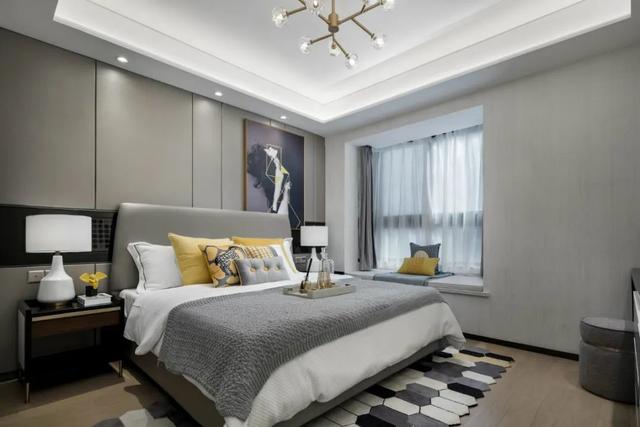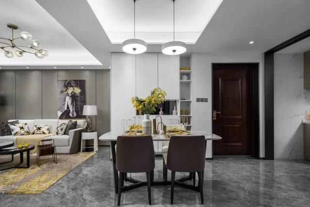 在这套100平米的现代风格装修中,整体空间以灰色调的设计为主,并在家具细节处加入黄色的点缀装饰,整体简约而舒适的软装布置,营造出一种现代优雅的居住氛围感。