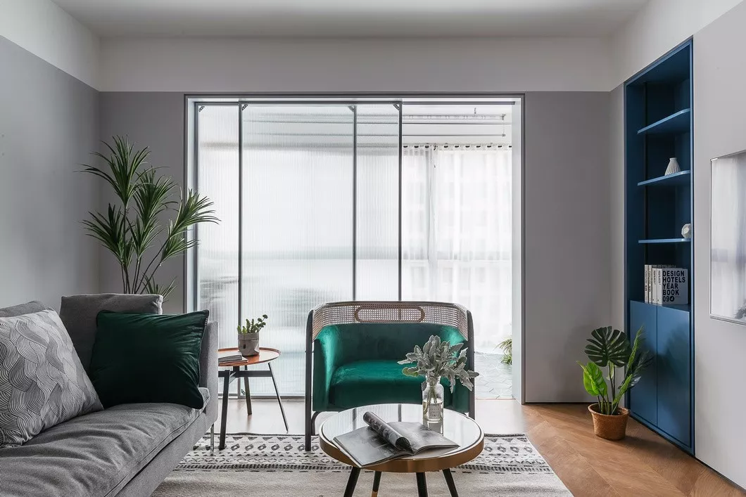 优雅蓝色散发着恬静气息,将身心投入沙发柔软怀抱,清风落在窗前,愈静心愈净心。