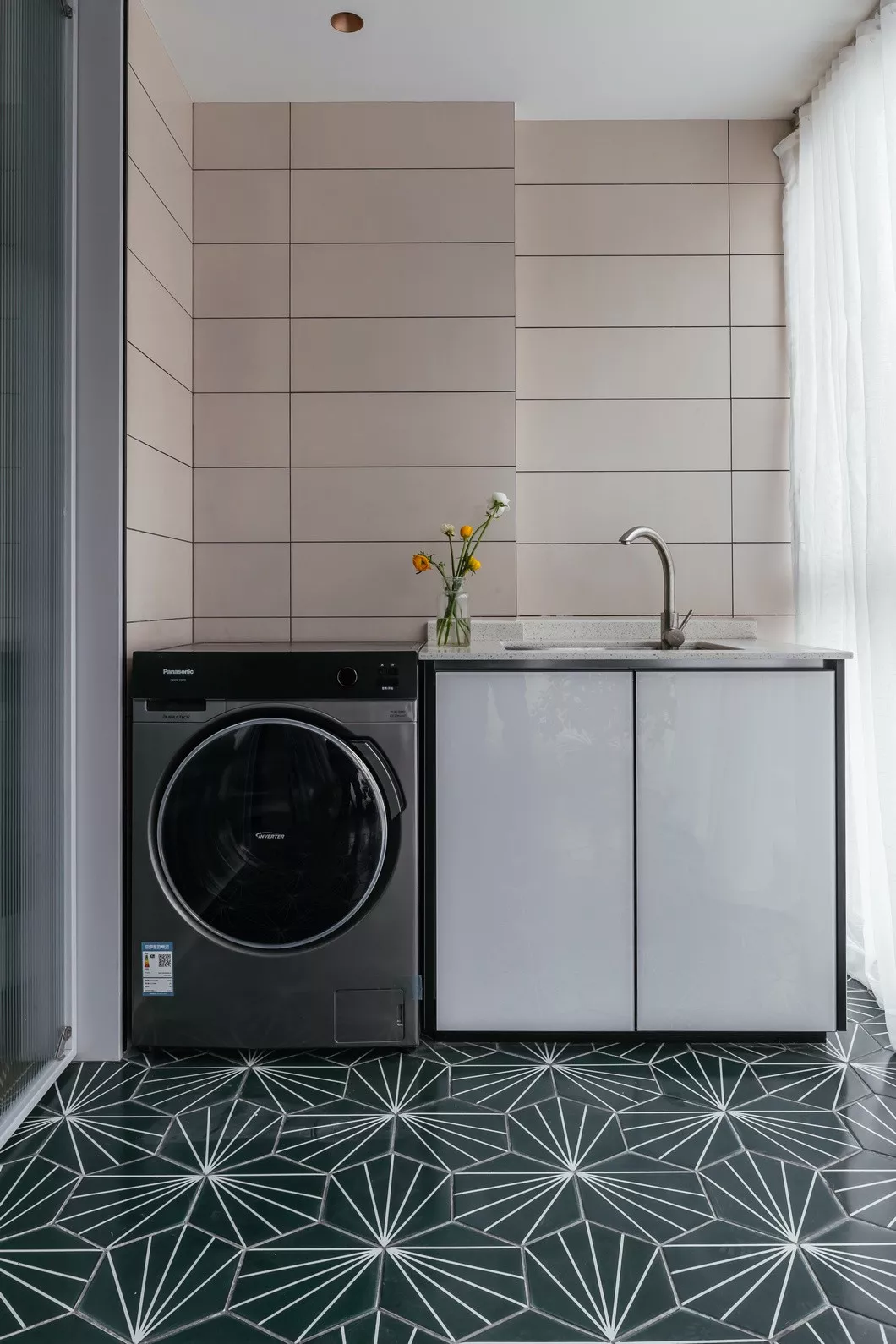 阳台,更注重实用性。经过设计师特别设计铺贴六角地砖,把思绪带回记忆中万花筒画面,是童年回忆散发出来的光芒,亦是随心而来洒脱。