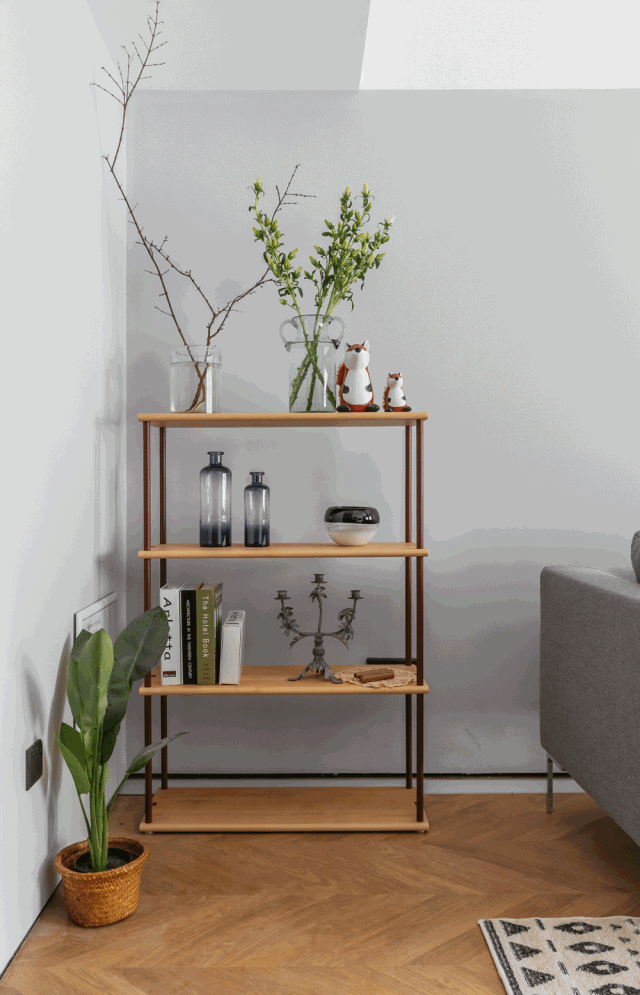 女主热爱旅行,玩转全球她当然少不了买纪念品。半开放层板和储物柜,让旅行过程中淘到宝物们有了妥帖安排。