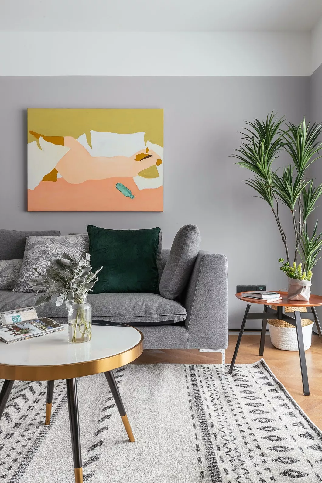 北欧风中最不容易出错当然是灰色沙发!亚麻材质透气性、舒适度都非常可靠,价格也适中,是年轻人装饰家居环境一个不错选择!