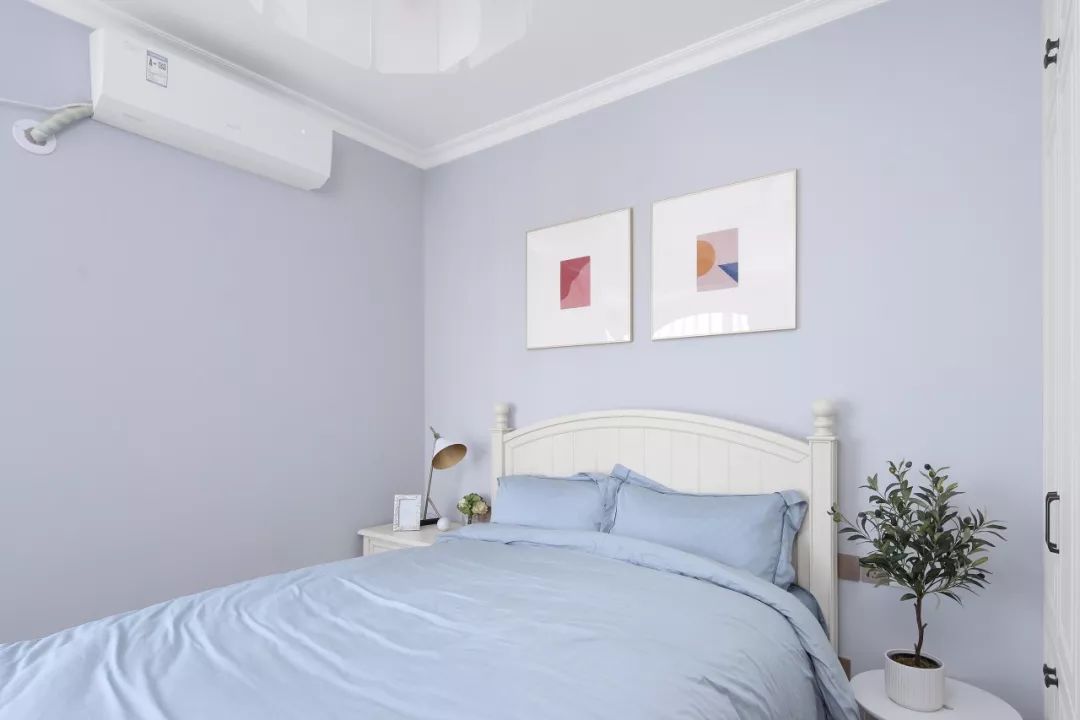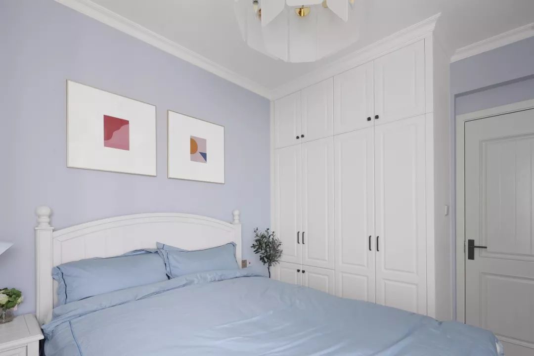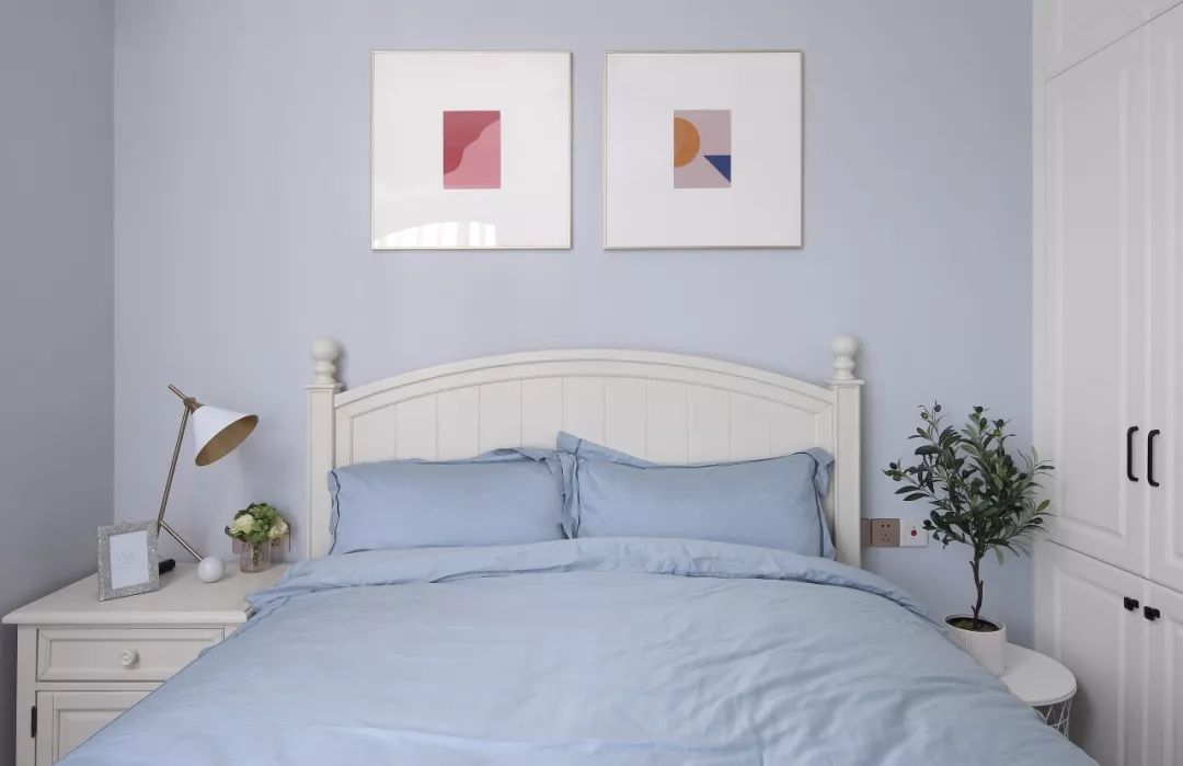 次卧整体以蓝色为主搭配上白色床和白色衣柜,显得简约又清爽。