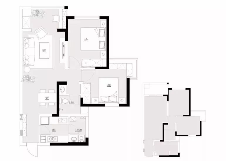 客厅与阳台之间没有设置隔断,保证了空间的通透明亮。