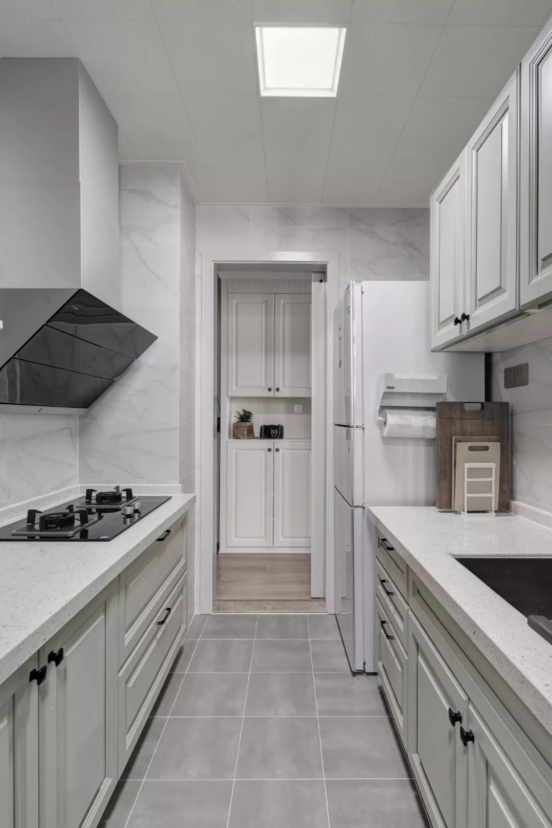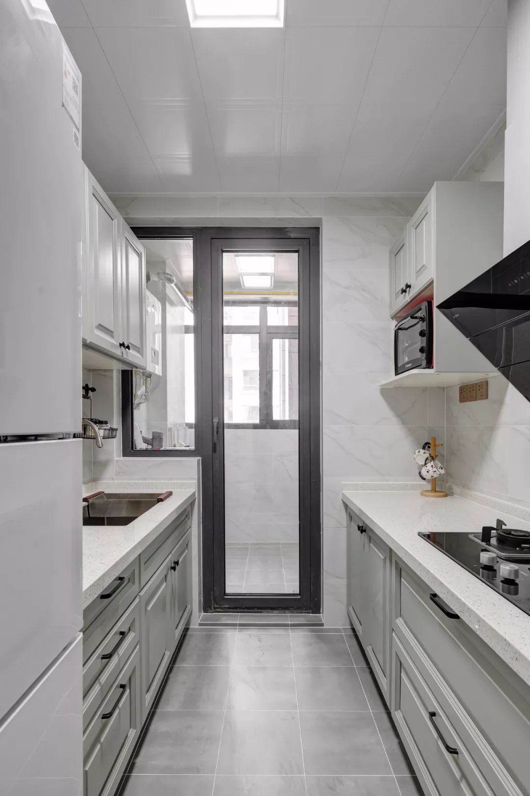厨房整体以灰色为主色调,采用二字型布局设计,合理利用空间,使用起来更方便。