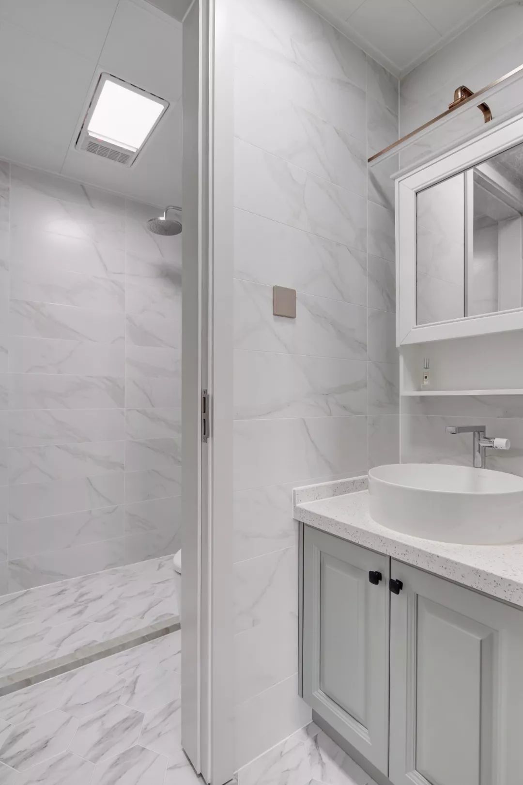 卫生间延续了整体的装修风格,以白色调为主,让空间显得整洁又干净。将洗漱台外移过道走廊,使用起来更方便。