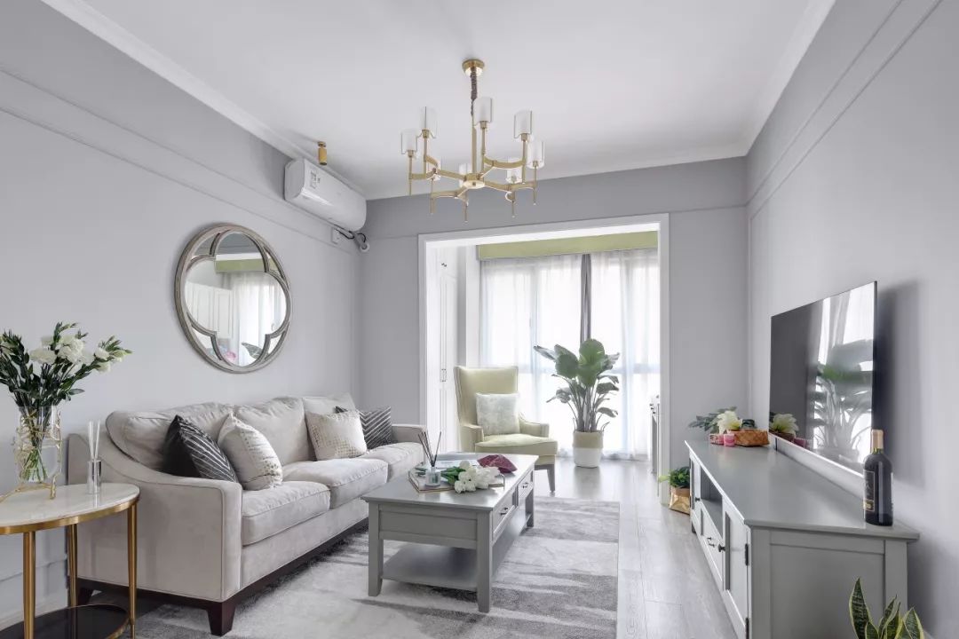 今天蓝海盛饰要分享的是一套78㎡现代美式风小户型装修案例,浅灰色为主色调,搭配上黄铜元素,让家显得雅致又精致。