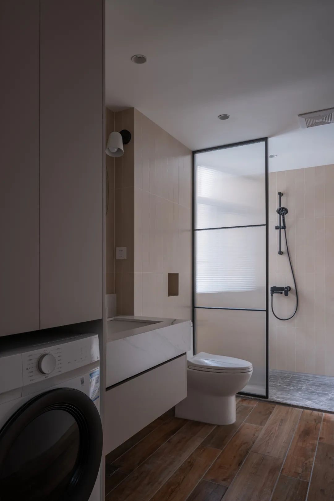 卫生间整合了家政区,洗漱、清洗脏衣,一气呵成,动线更加便利。