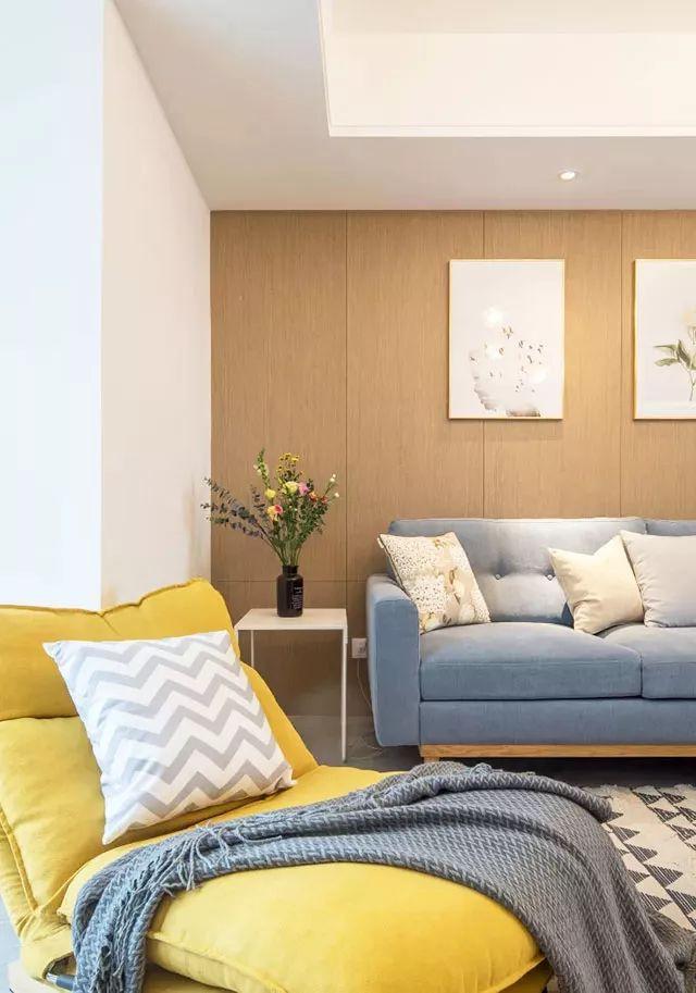 亮黄色的躺椅,与蓝色系沙发,与客厅其他色彩结合在一起,更容易打造出一个自然清新,丰富斑斓的居室效果。