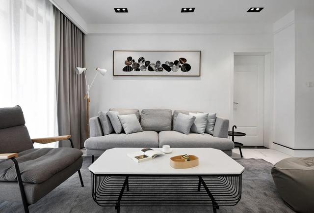 ▲客厅空间以现代风格为主调,整体地面垫上地毯,摆上现代舒适的家具,无主灯的天花,整体搭配充满自然从容的惬意与文艺气质。