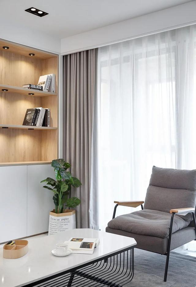 ▲大理石台面的茶几,搭配休闲沙发椅,靠窗位置的一盆绿植装饰,都让空间显得更加清新时尚舒适。