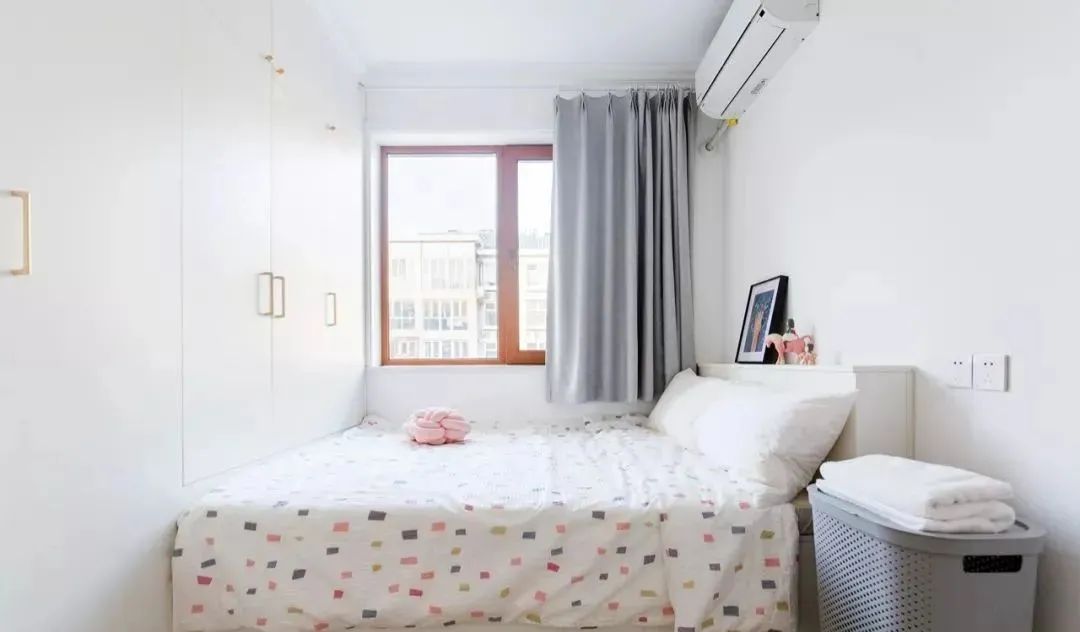 床头一侧是白色的大衣柜,暗红色的梳妆台小巧但精致。