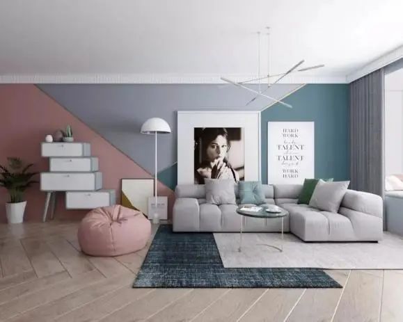 蓝海盛饰建议墙面选择拼色的话,颜色不要选太多哦,做好不要超过三种颜色。